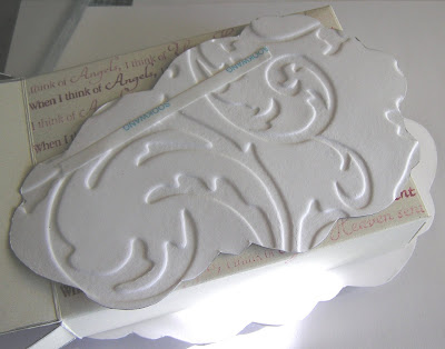 Step 5) Put dimensionals/foam tape on the angel & sit her over brad on card front